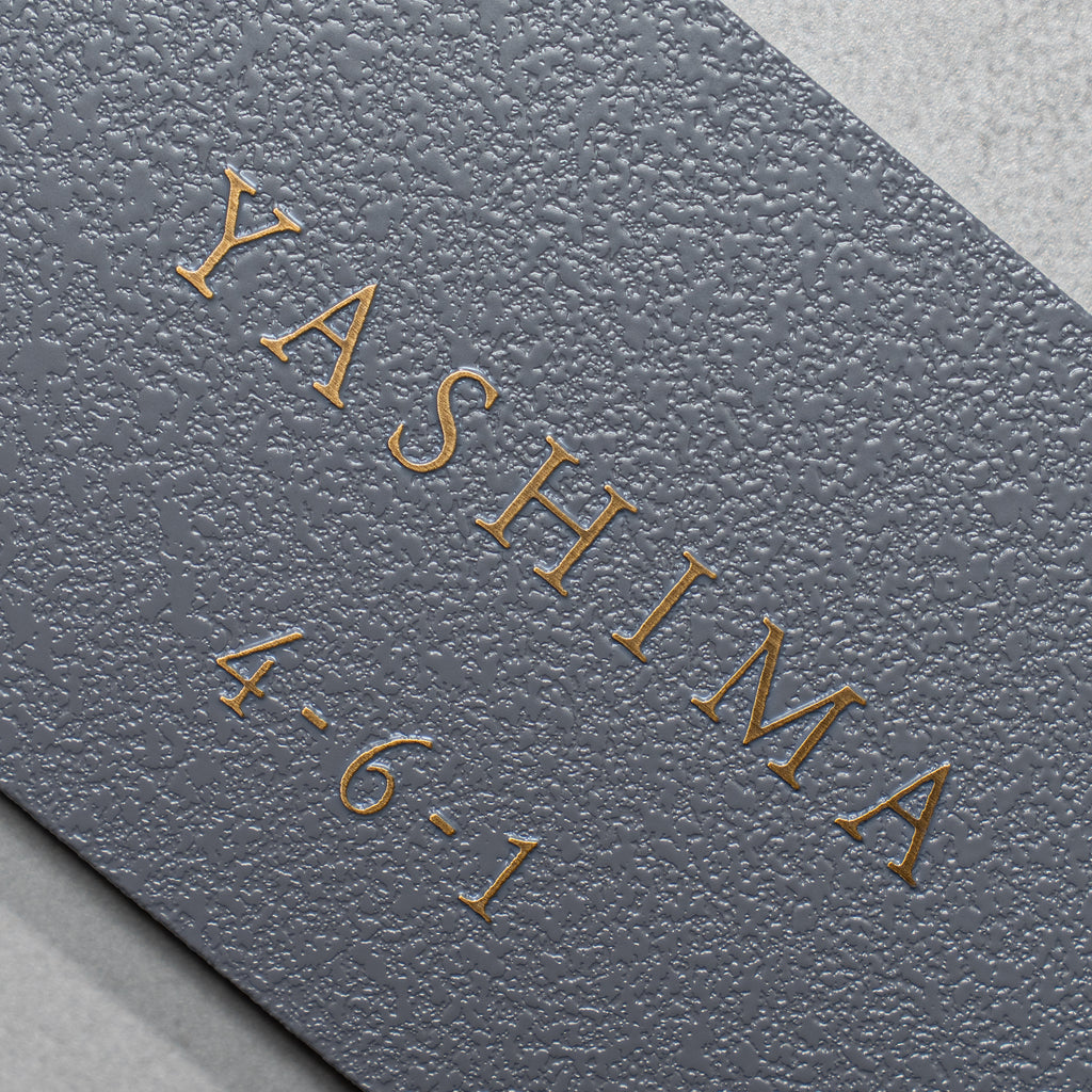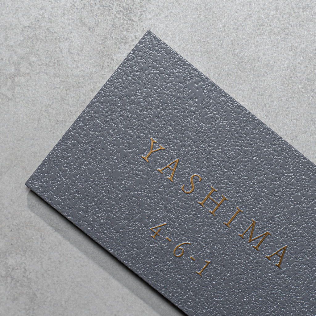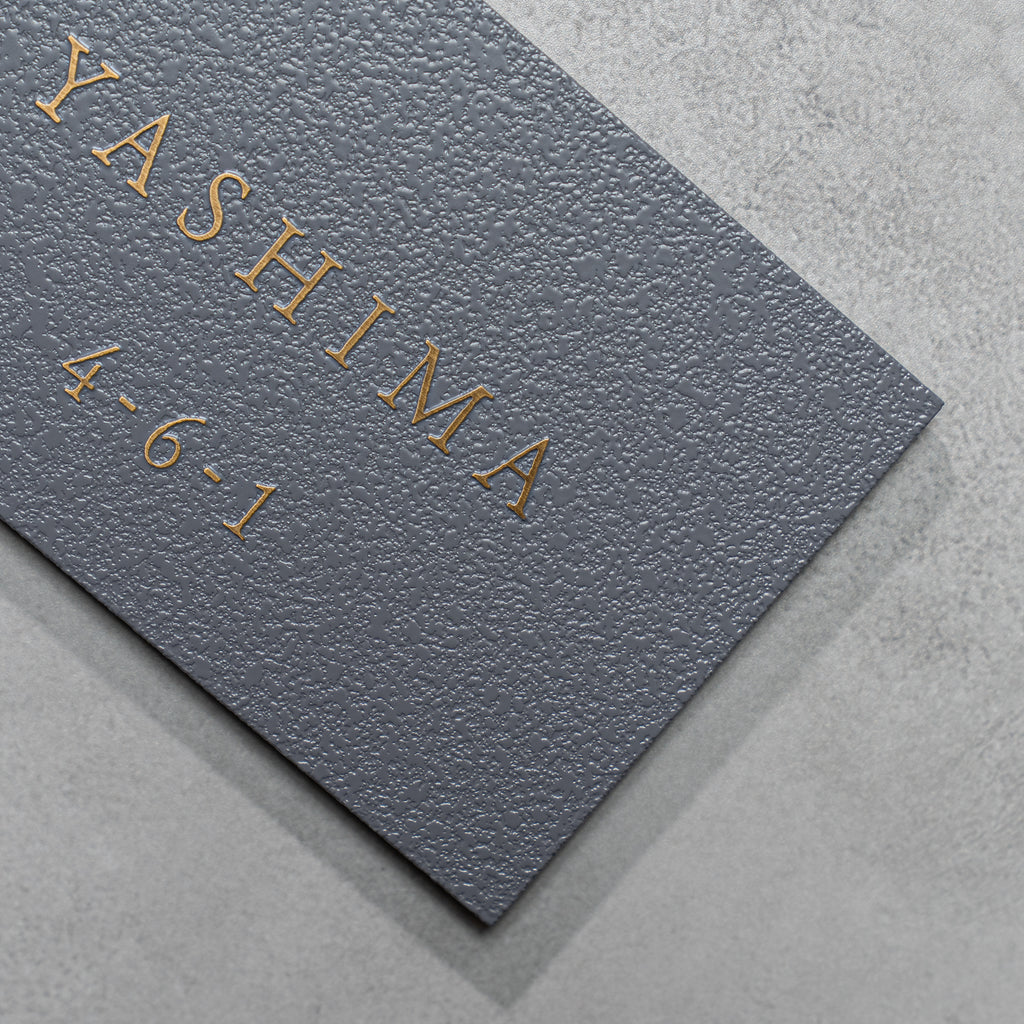 表面は梨地仕上げを施すことで立体感が出て、見る角度や光の入り方によって幻想的に映ります。文字部分はエッチング加工を施すことで、真鍮の繊細で美しい輝きを際立たせ、クリアコートを施しているので比較的ゆっくりとした経年変化をお楽しみいただけます。