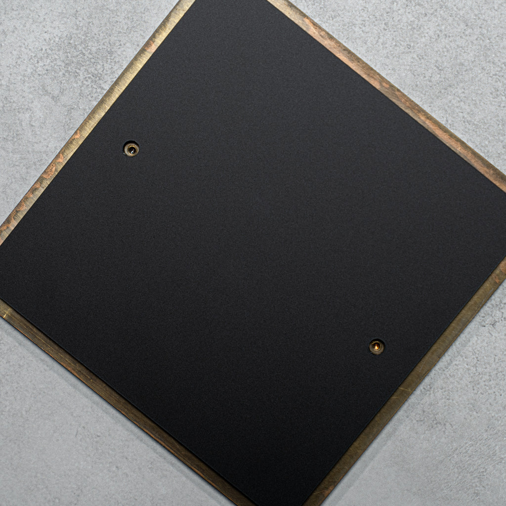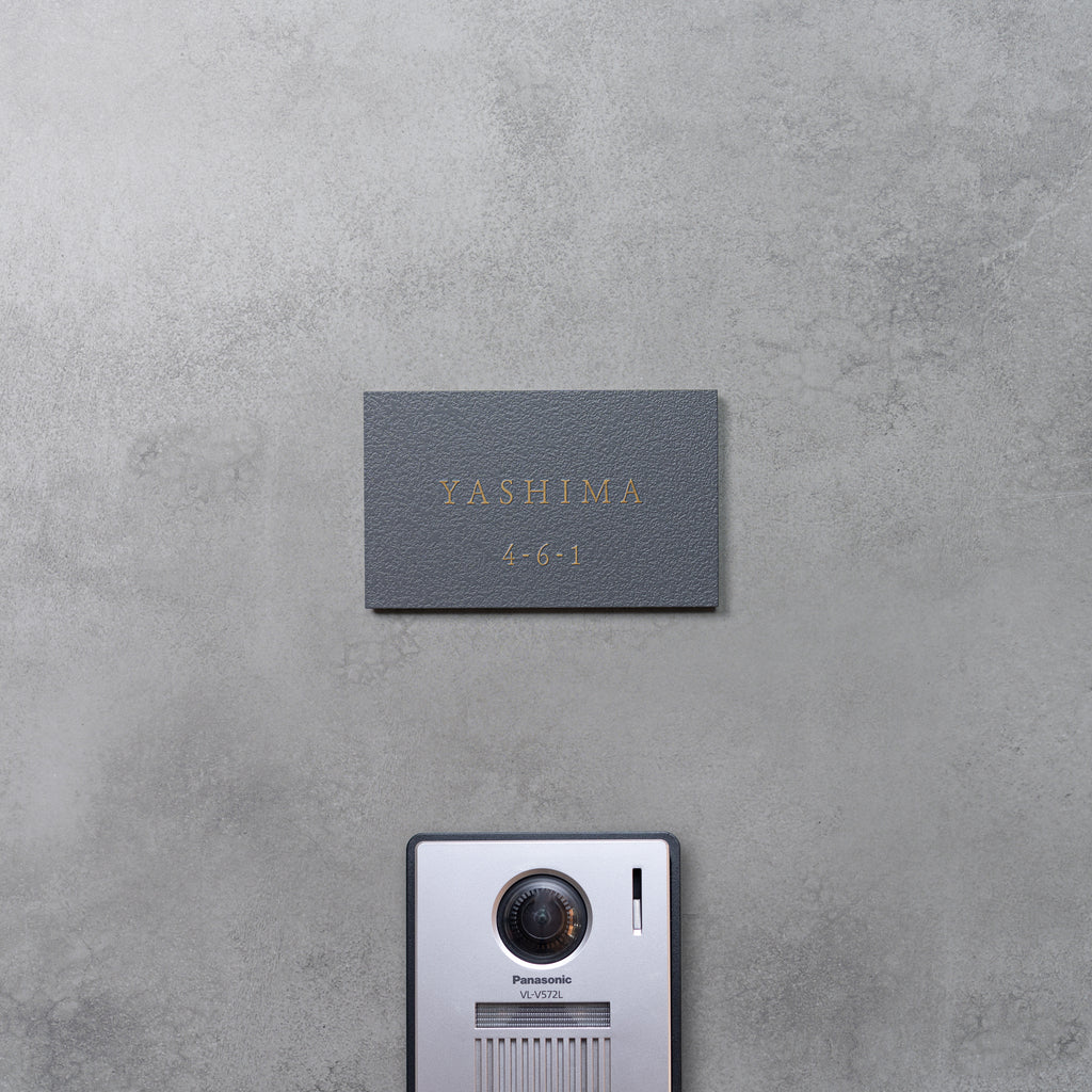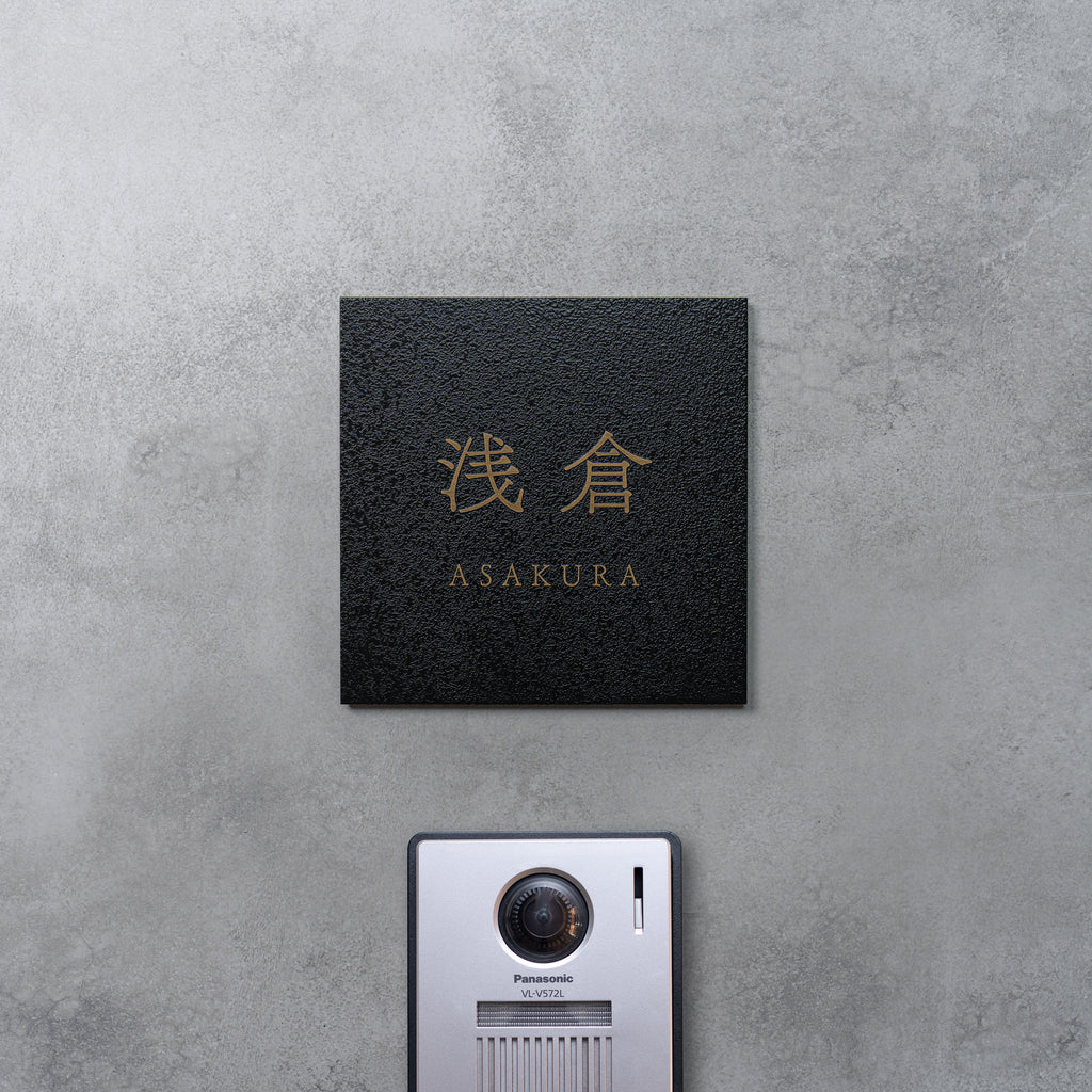 商品名:Barley(ブラック) 材質:真鍮、アクリル 仕上げ:梨地ブラック塗装、文字色真鍮ヘアライン、彫刻凸エッチング サイズ:W150mm×H150mm×T7mm(真鍮4mm、アクリル3mm) 実際に施工された商品のご紹介です。 アクセントのある黒塗装に真鍮色の文字が映える商品となっ...