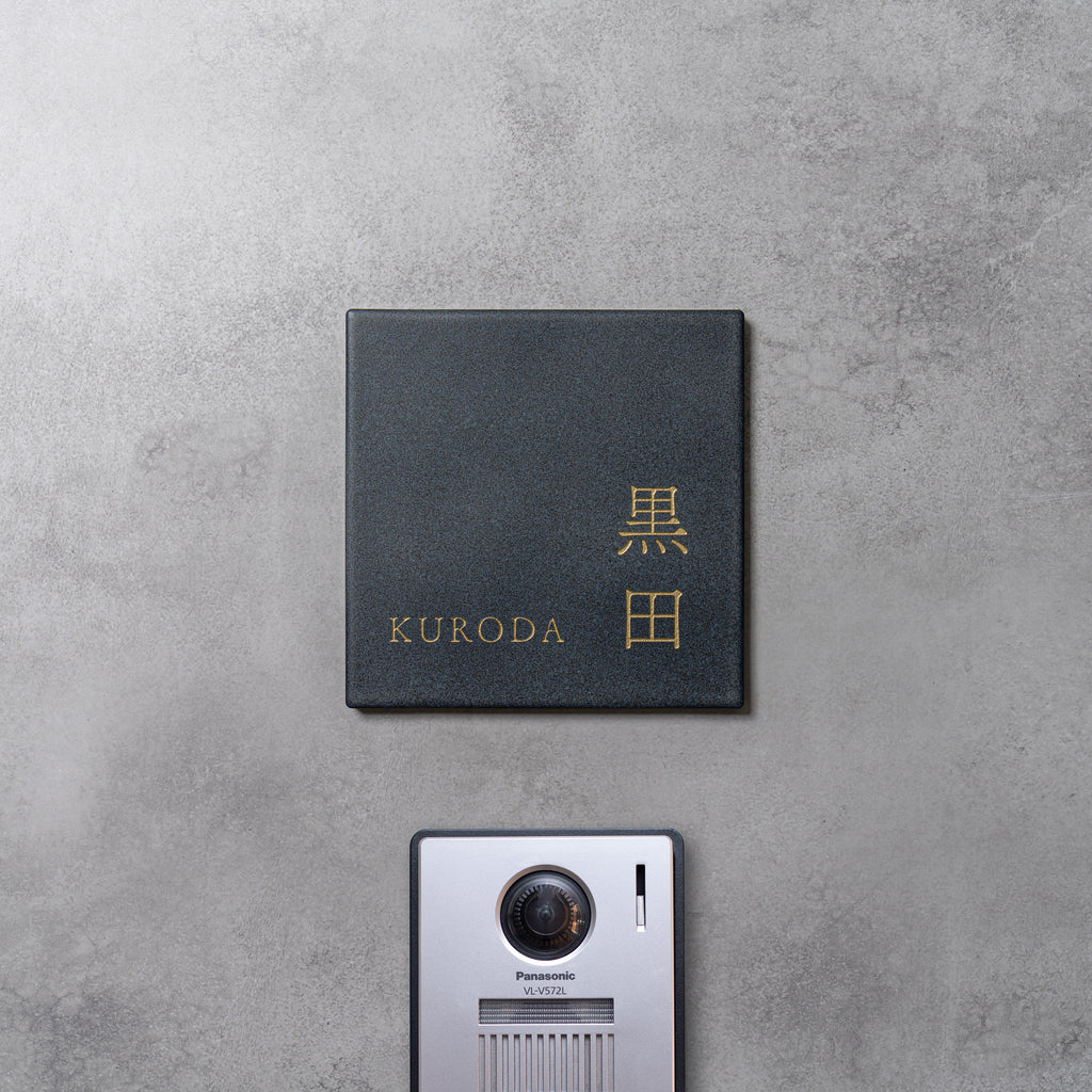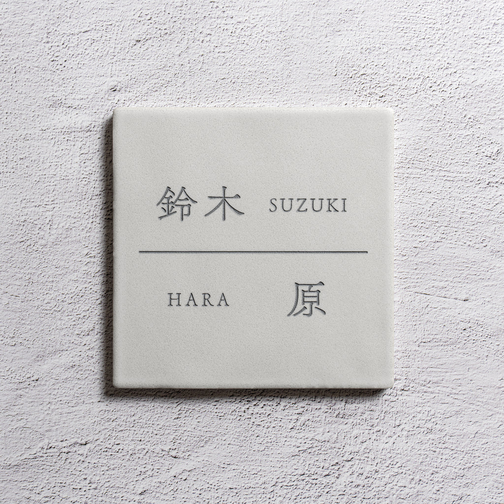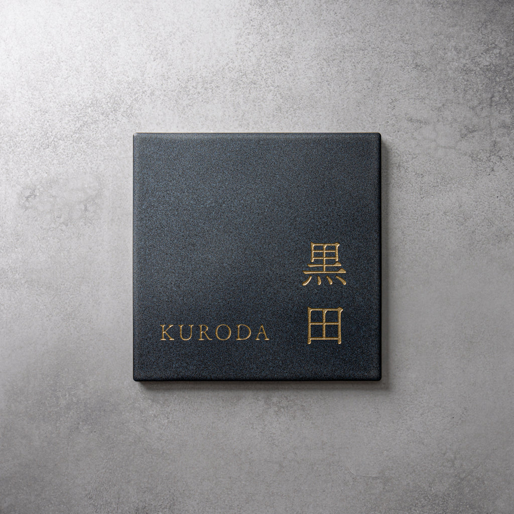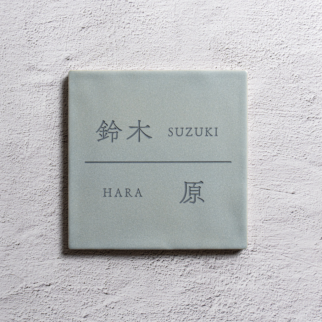 商品名:Fikaチャコール 材質:磁器タイル サイズ:W147mm×H147mm×T8mm 当店の大人気商品であるFikaシリーズ 英字のみ筆記体での依頼で製作をさせていただきました。 流行りのくすみカラーはどんな場所にも違和感なく溶け込んでくれるのでお勧めです! 漢字の部分を番地に変...