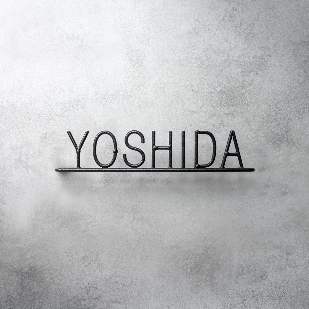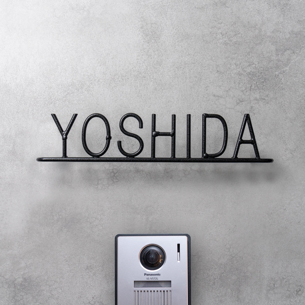 表面のザラザラした質感は、サンドブラストという特殊加工によるものです。また、溶接の跡をあえて残すことで男らしい表札に仕上げています。