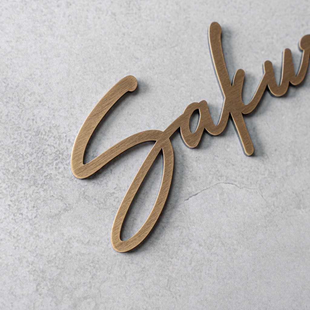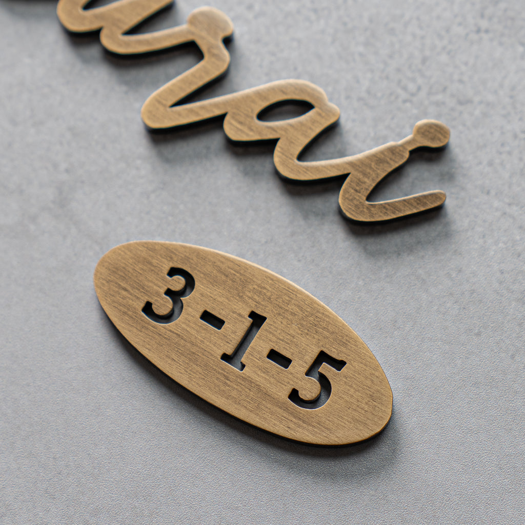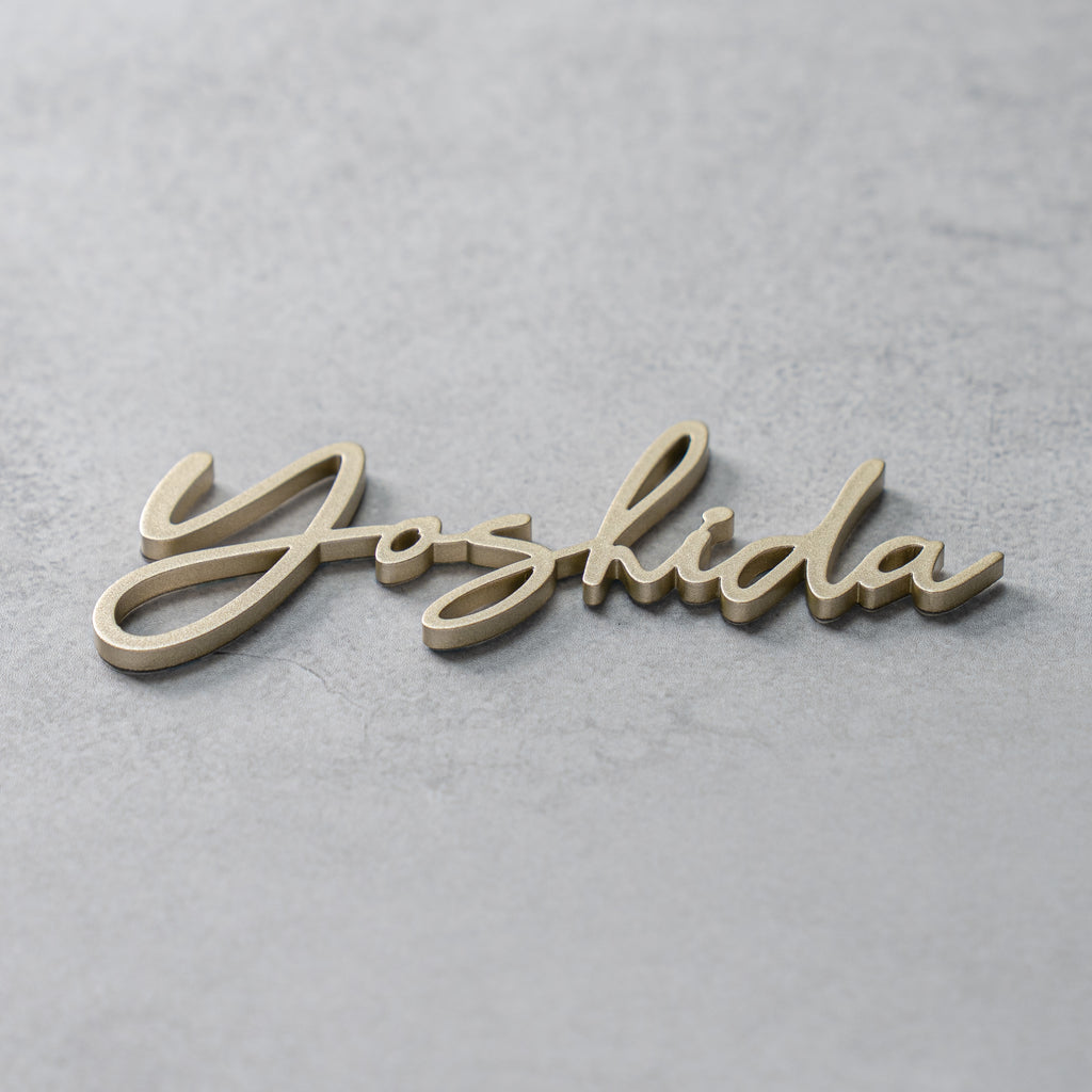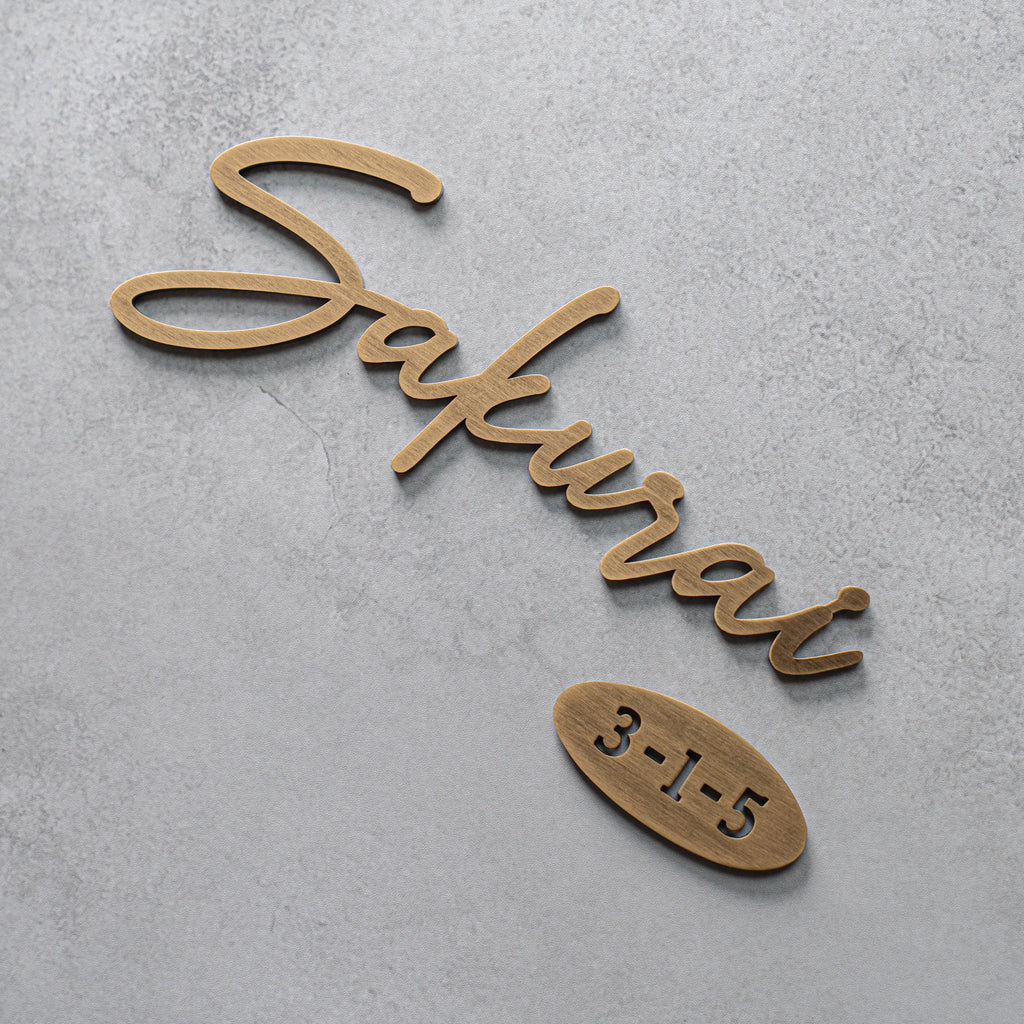 時と共に深まる真鍮と艷やかさが美しいステンレスから選べる切文字表札。