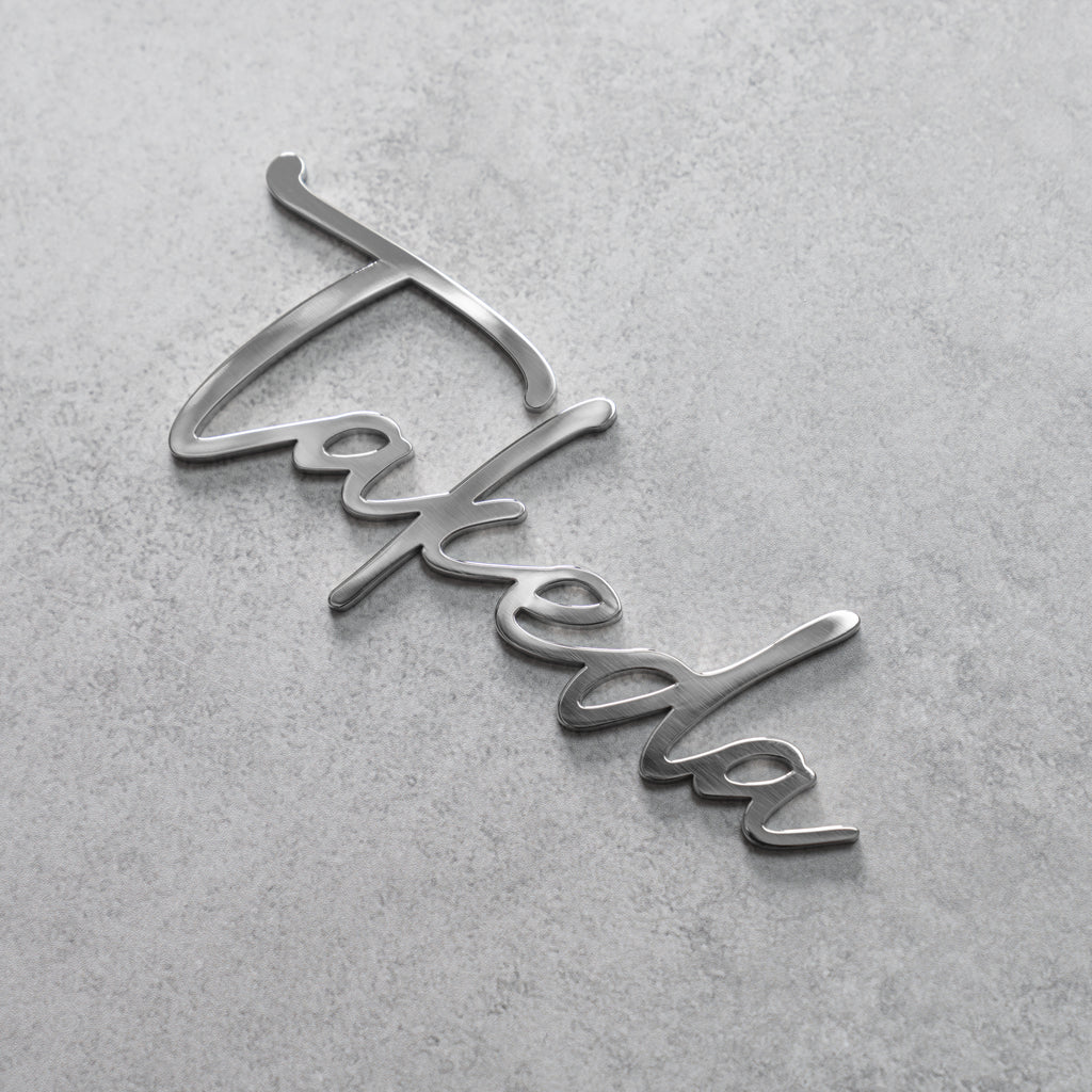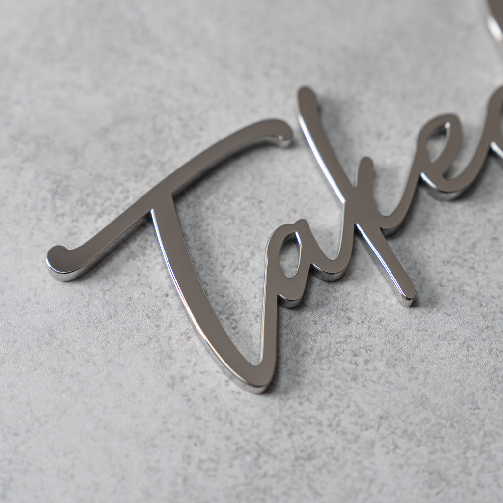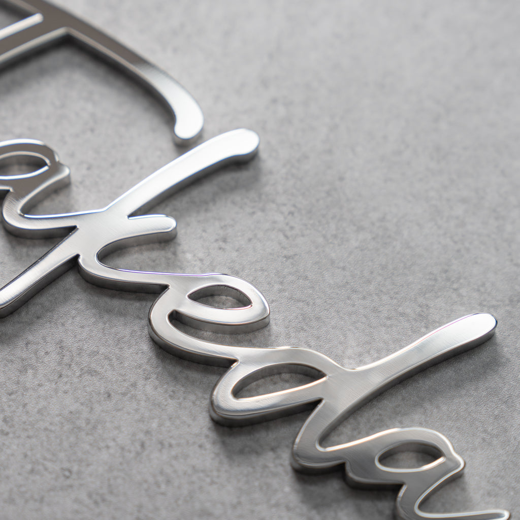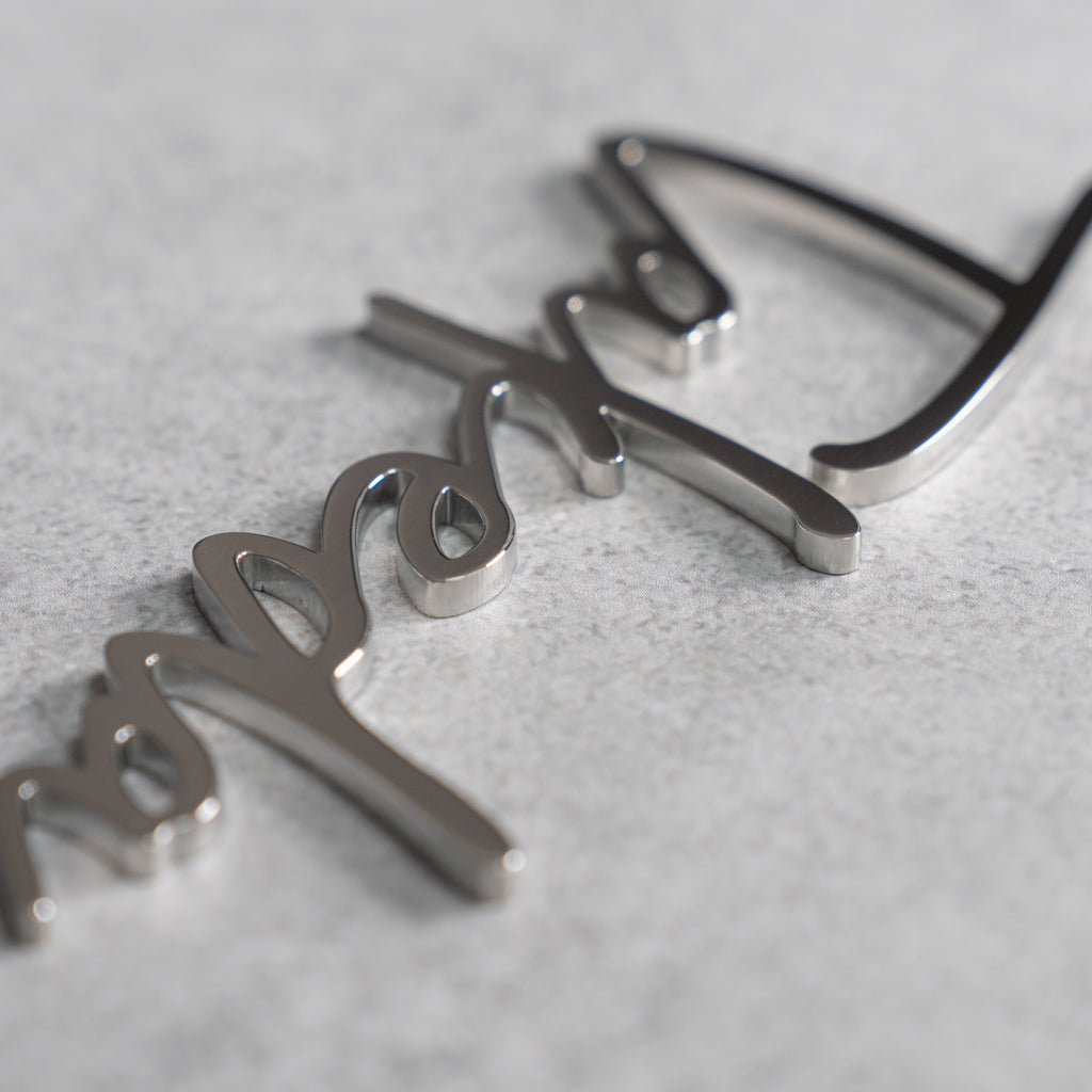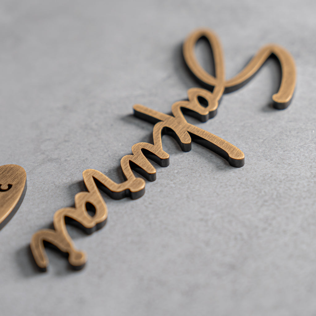 時と共に深まる真鍮と艷やかさが美しいステンレスから選べる切文字表札。