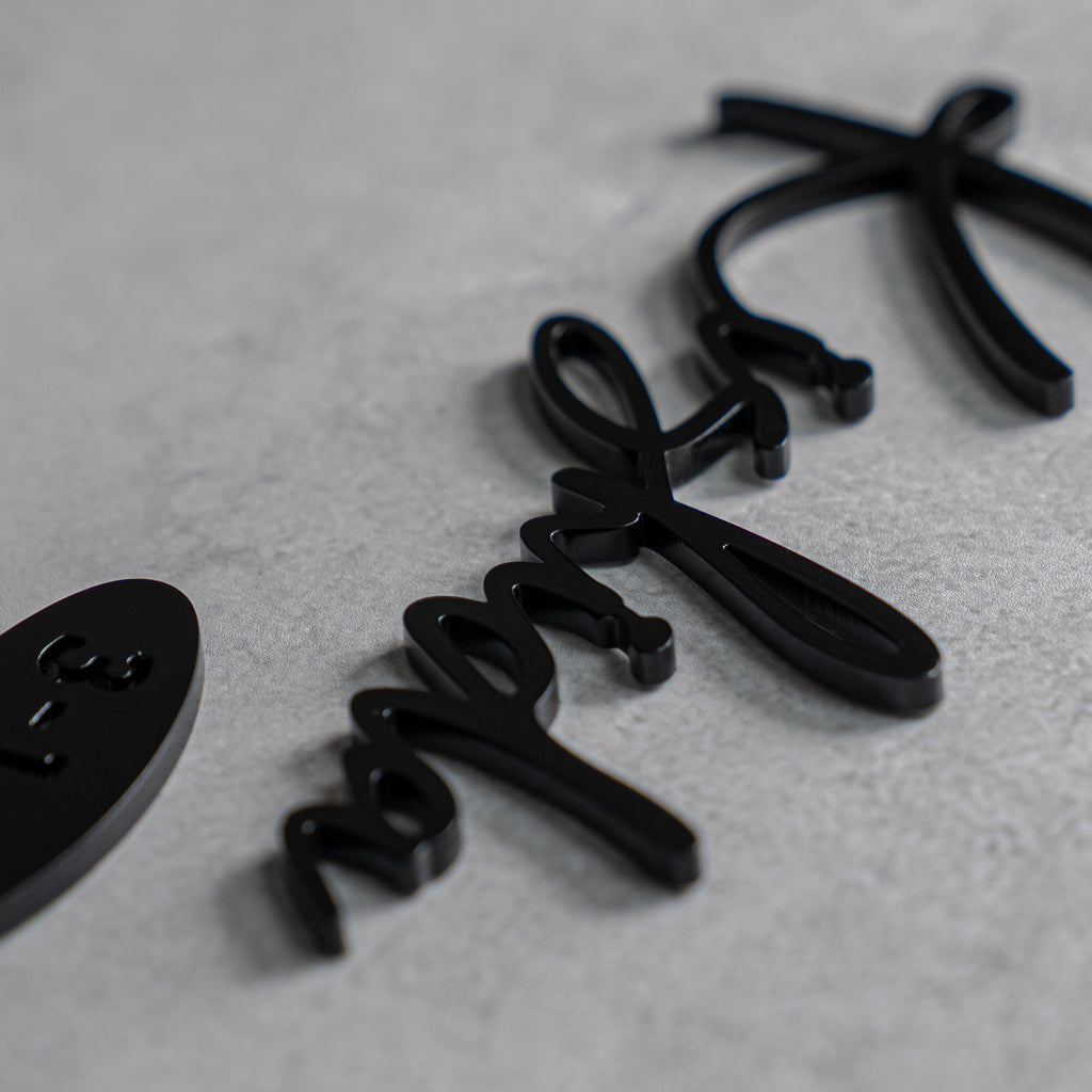 表札:Mark(ブラック) サイズ:横250×縦85×厚み3mm 今回製作させていただいた商品につきましてご紹介させていただきます。 黒の切文字がどんなところにも映える表札Mark(ブラック) 今回、お客様からのご要望でMの形を調整して製作させていただきました。 サイズにつきましても...