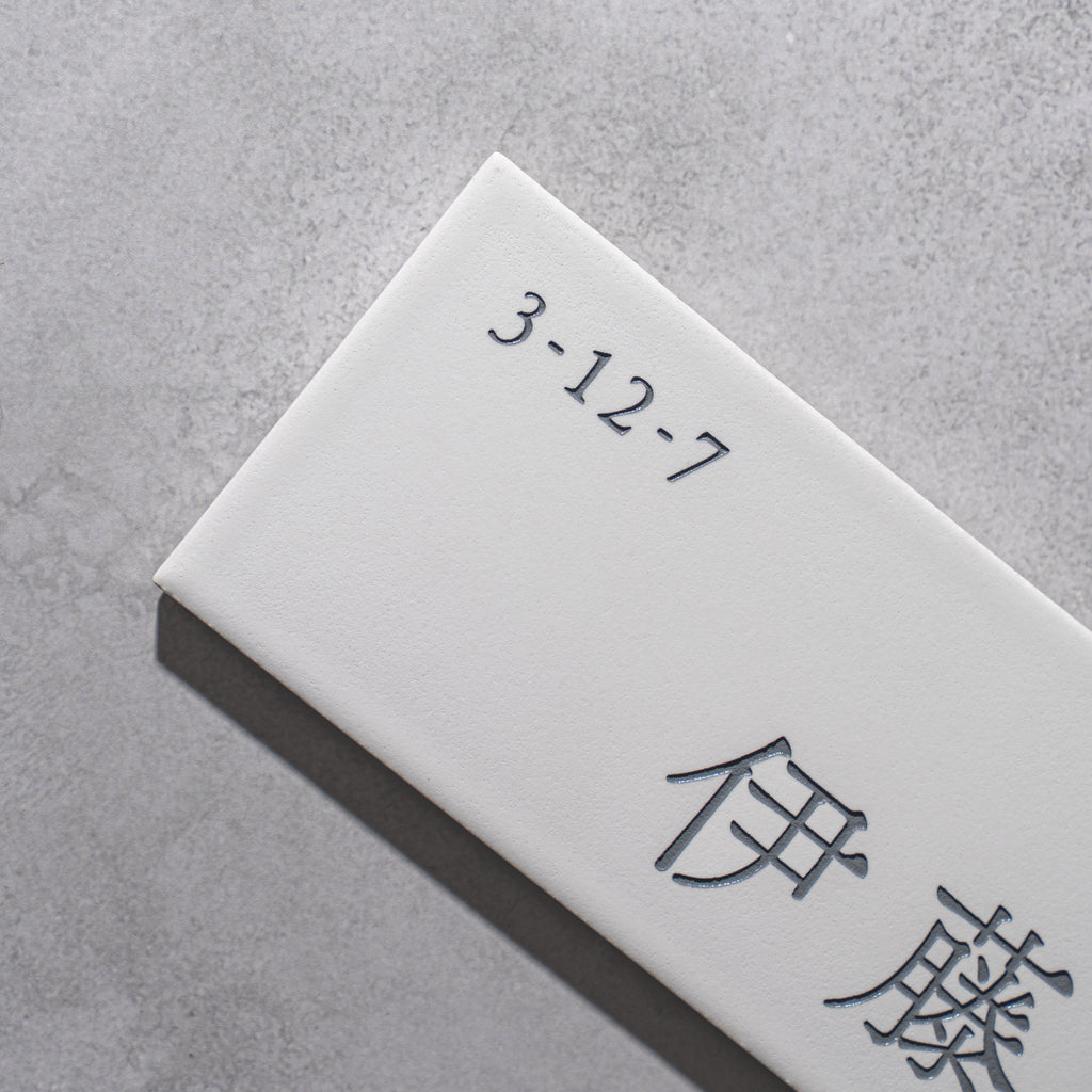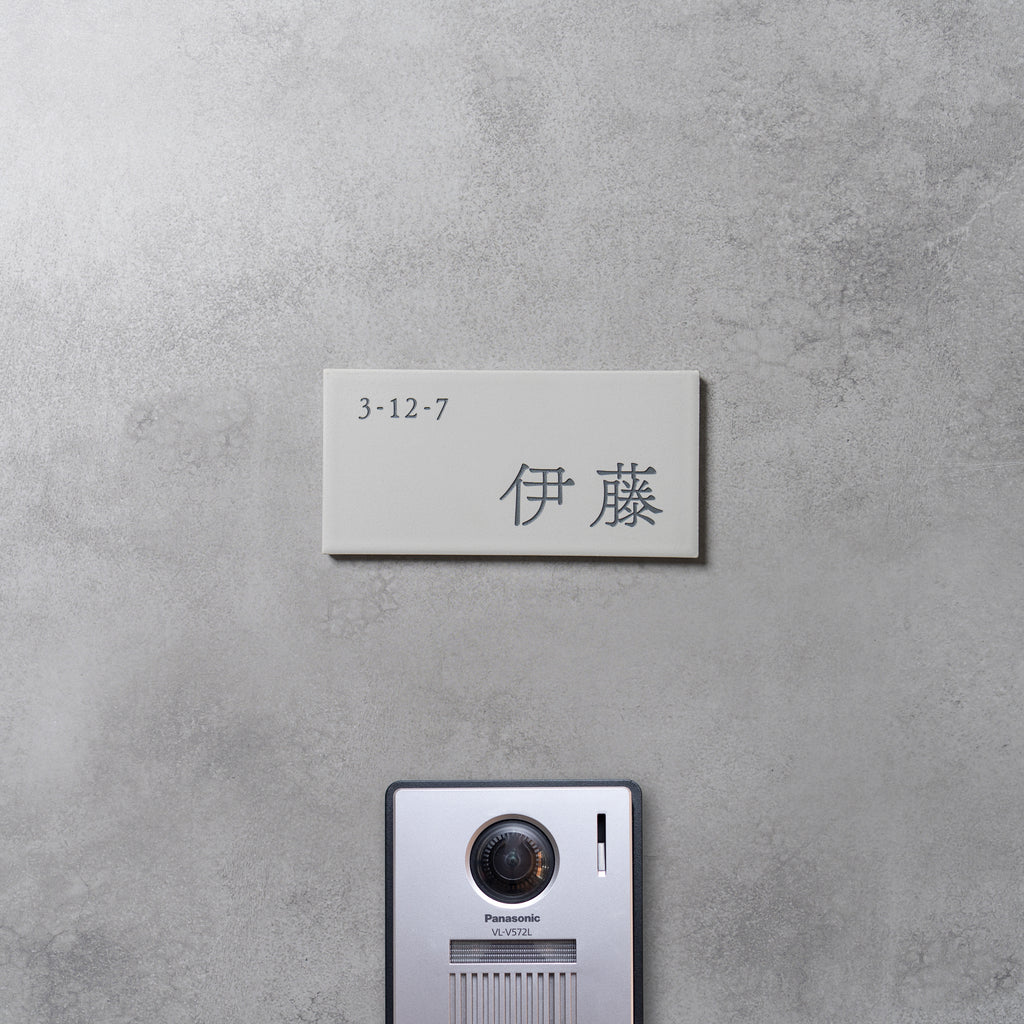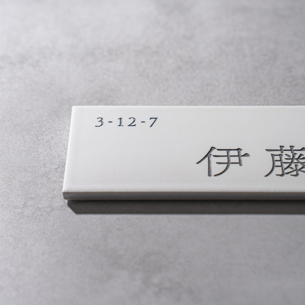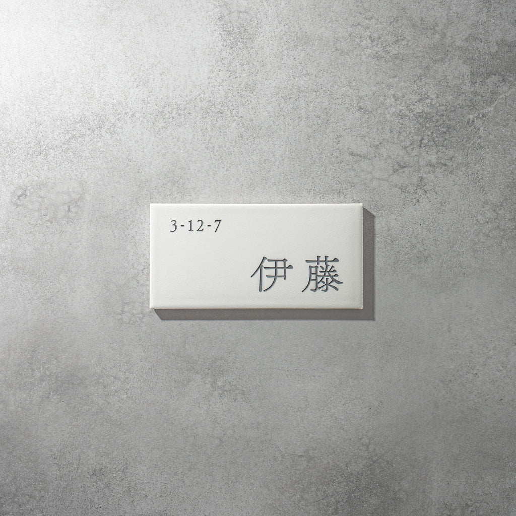 表札:Piece(ホワイト)サイズ:W147×H72×T8mm ※個人情報保護の為、番地を消しております。 コンパクトな磁器タイル表札である「Piece」マットな質感とタイル製故に雨風などの耐候性が高い商品となっております。 コンパクトな為、門柱にも取り付ける事が出来るオススメ商品とな...